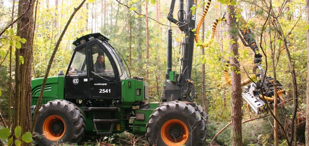 Машина с колесной формулой 4х4 специально разработана для проведения рубок ухода за лесом, при этом характеристики харвестера позволяют использовать его и на сплошных рубках, на сухих и мерзлых участках лесосеки.