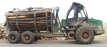 Машина с колесной формулой 6х6 грузоподъемностью 9 тонн способна за один рейс перевозить до 10 кубических метров лесоматериала. В зависимости от длины перевозимого сортимента коники могут быть перемещены относительно продольной оси грузового отсека с шагом 190 мм.