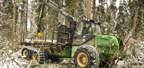 Машина грузоподъемностью 12 тонн способна за один рейс перевозить до 14 кубических метров лесоматериала. Благодаря гидромеханической трансмиссии машина способна перемещаться на значительные расстояния своим ходом на скорости до 28 км/час, что позволяет ей последним рейсом самостоятельно доставить груз на склад лесоперерабатывающего предприятия.