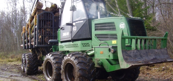 Благодаря гидромеханической трансмиссии машина способна перемещаться на значительные расстояния своим ходом на скорости до 27.5 км/час, что позволяет последним рейсом самостоятельно доставить груз на склад лесоперерабатывающего предприятия.