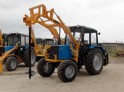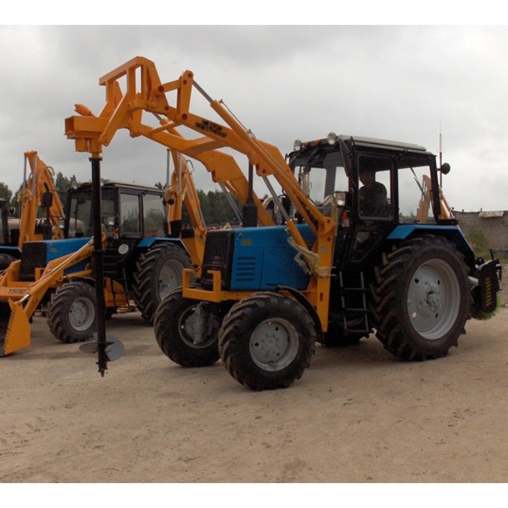 Устройство отлично совмещается со спецтехникой белорусского производства. Механизм ямокопателя управляется при помощи навесной гидравлической системы. Агрегат навешивается на фронтальную часть трактора, что позволяет машинисту беспрепятственно контролировать весь процесс бурения.