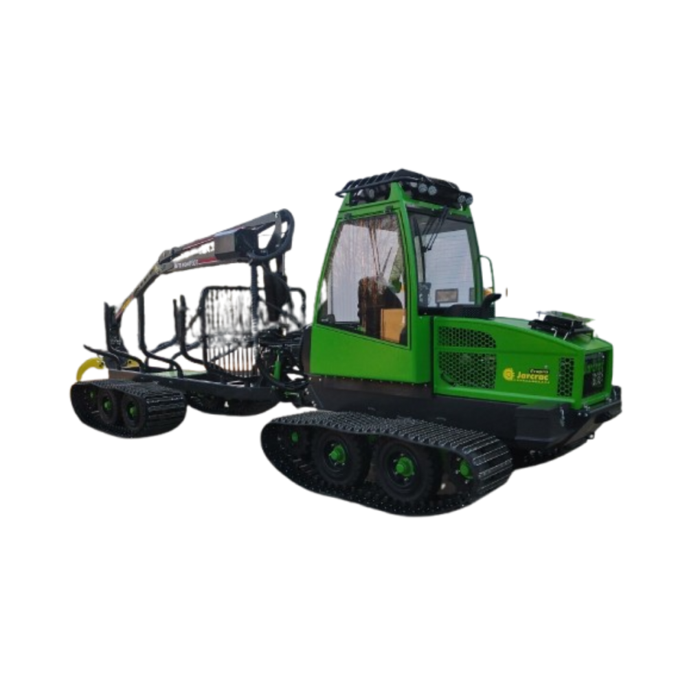 Jarcrac Evopro — манёвренный форвардер с низким давлением на почву, рассчитанный на эффективную вывозку древесины при прореживаниях и ремонтных рубках. В базе: сертифицированная кабина ROPS/OPS/FOPS, кран Mowi «низкий пилон», продуманная гидравлика и устойчивое шасси с автоматическими блокировками.