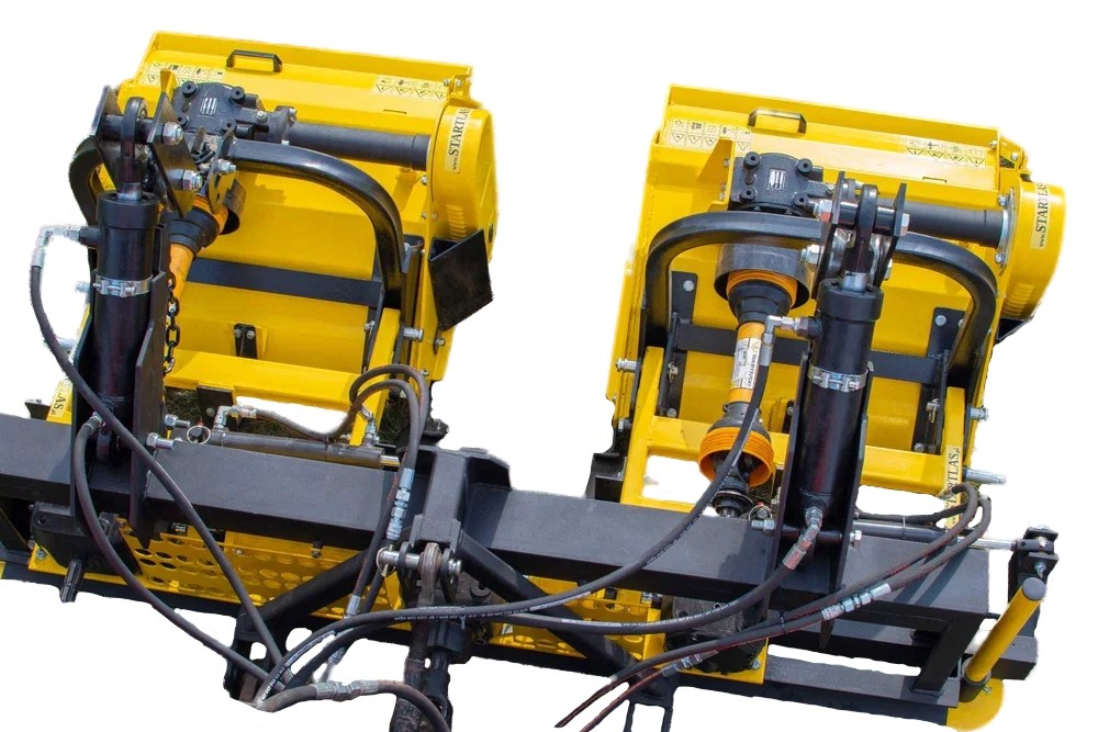 Конструкция и принцип работы. Состоит из двух независимых секций с роторными ножами (молотковые или Y-тип). Каждая секция имеет гидросдвиг ±25 см. Привод от ВОМ трактора (540 об/мин). Опорные полозья обеспечивают плавность хода по неровностям и над пнями.