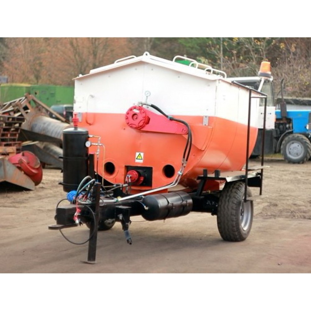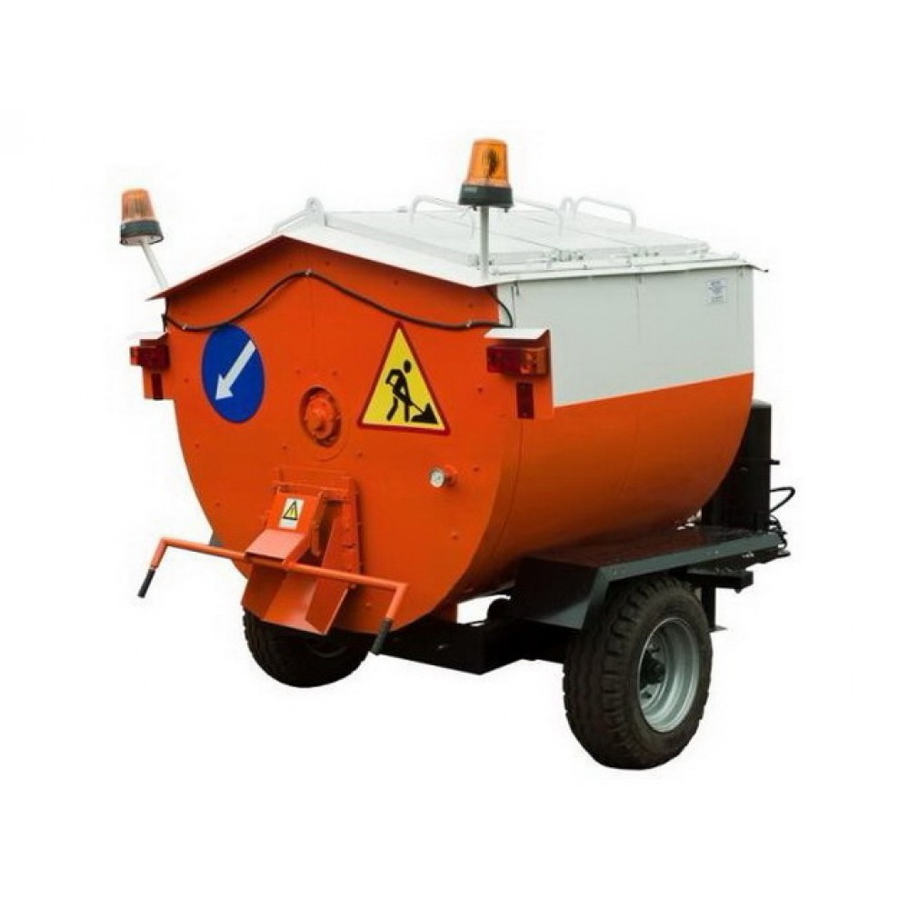 В движение рабочая емкость оборудования приводится при помощи гидравлической системы трактора, с которым агрегатированно данное устройство. При заполненном баке допускается максимальная скорость передвижения агрегата до 20 километров в час. Такой скорости вполне достаточно для того, чтобы вовремя доставлять смесь на место проведения дорожно-ремонтных работ. Кроме подогрева готовой смеси, агрегат может расплавлять холодные фрагменты извлеченного дорожного покрытия.