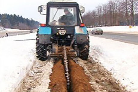 Представляем мощное навесное оборудование ЭП-Ф-Ц для навешивания на трактор. Основное назначение данного навесного агрегата – это рытье траншей, каналов и пр. Преимущественно данный агрегат используется службами, которые занимаются прокладкой кабелей электропередач, различных трубопроводов, а также ля выполнения строительных работ небольшого объема.
