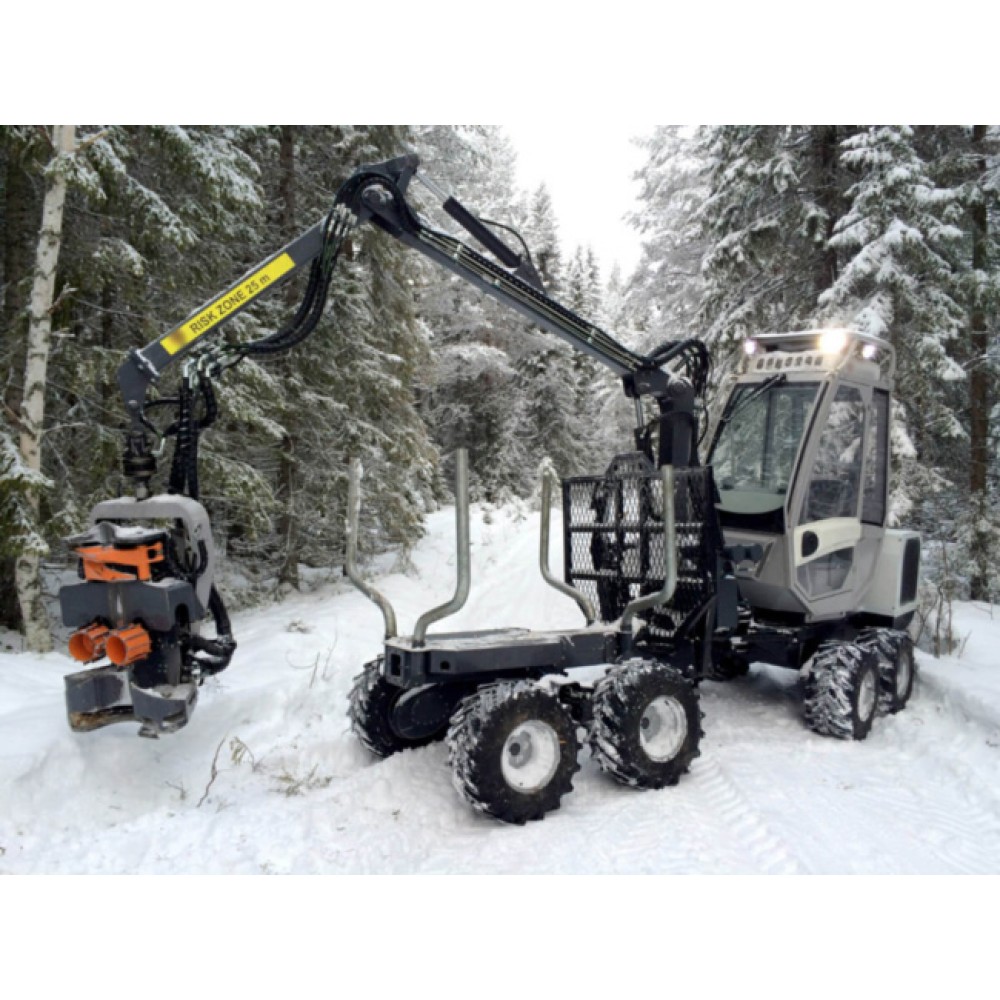 Прості у використанні, гнучкі електронні органи управління - це одне, але, крім цього, обертається кабіна безпеки, що пройшла випробування із застосуванням FOPS і ROPS, дає безпрецедентні враження від водіння на невеликій лісозаготівельній машині. Коли вся кабіна обертається між положеннями для руху і навантаження, оператор завжди має найкращий огляд і зручність керування незалежно від напрямку руху. Вікна виготовлені з полікарбонату, що забезпечує безпеку оператора при збиранні врожаю. Навіть якщо пильний ланцюг харвестерної головки обірветься, оператору всередині кабіни не загрожуватиме небезпека. Опалення та кондиціонер потужністю 3 кВт гарантують, що температура завжди буде оптимальною для комфортної роботи.