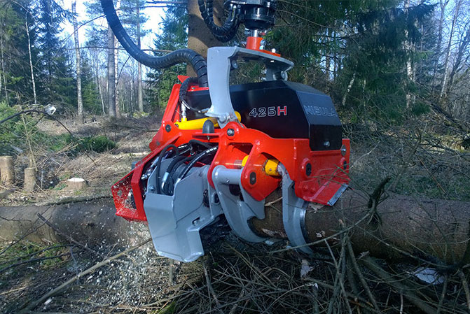 Nisula 425H - это многоцелевая головка, оснащенная грейферными рычагами, которые делают обработку и сортировку древесины легкой. Система управления NCU3 регулирует силу захвата рычагов грейфера к стволу дерева, обеспечивая надежное сцепление во время рубки.