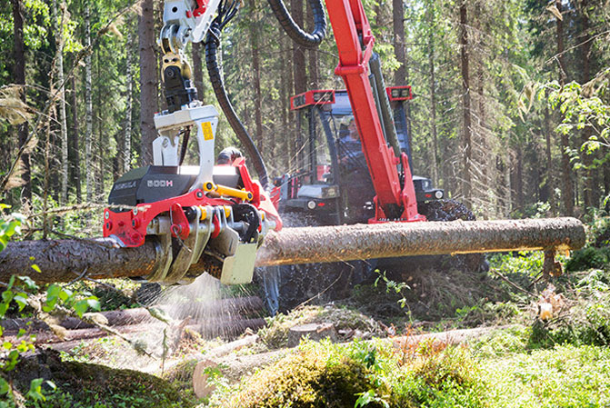 Nisula 500H является мощной альтернативой для последующего прореживания и окончательной вырубки мелкоствольных деревьев. Ее физические размеры подходят для прореживания, а благодаря высококачественным материалам вес также низок, всего 650 кг. 500C - это многоцелевая уборочная головка, оснащенная грейферными рычагами, которые делают обработку и сортировку древесины легкой. Система управления NCU3 регулирует силу захвата рычагов грейфера к стволу дерева, обеспечивая надежное сцепление во время рубки. Когда вырубаются более крупные деревья и обрабатываются более тяжелые стволы, рычаги грейфера вместе с передними и задним ножами и рулонным цилиндром усиливают прижим захвата к стволу. При запуске подачи сила захвата постепенно уменьшается, чтобы свести к минимуму трение. Система управления имеет предел диаметра, установленный для уменьшения силы захвата. При необходимости настройки можно настроить с помощью системы управления, но обычно головка комбайна лучше всего работает со стандартными настройками.